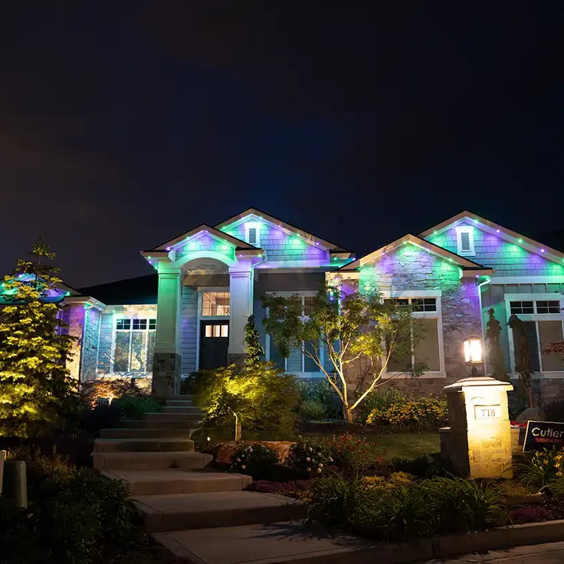 No matter the season, your home can set the right ambiance through the endless color options our permanent outdoor Jellyfish lighting offers. Holidays, special anniversaries, or even just your favorite color, your home is now your canvas.
